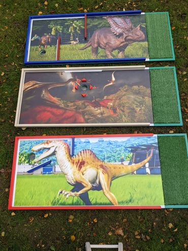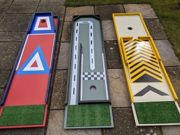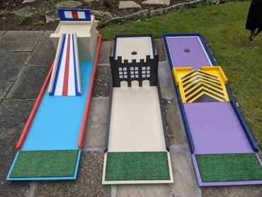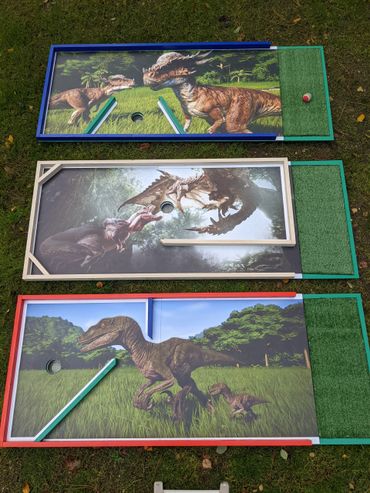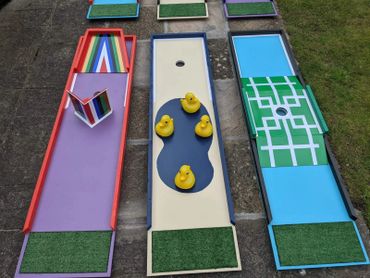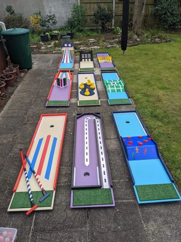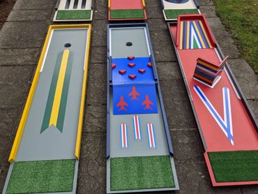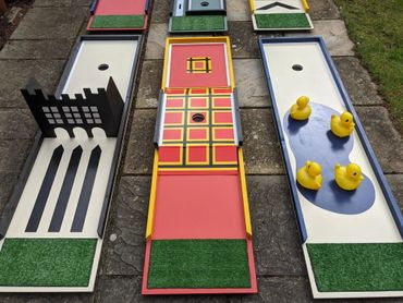We design and build handmade bespoke courses to any specification. You can choose large or small courses with featured themes such as our wedding, farm or dinosaur themes or choose your own theme!!